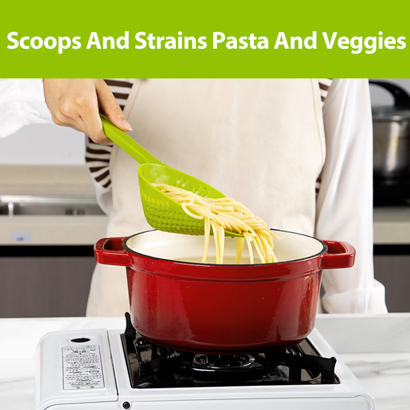 Say goodbye to juggling hot pots and bulky colanders. This scoop strainer is your all-in-one solution for quick and easy draining straight from the pot or pan. The large, slotted head efficiently lifts and drains everything from boiled pasta and blanched vegetables to fried snacks – no extra tools or mess required.